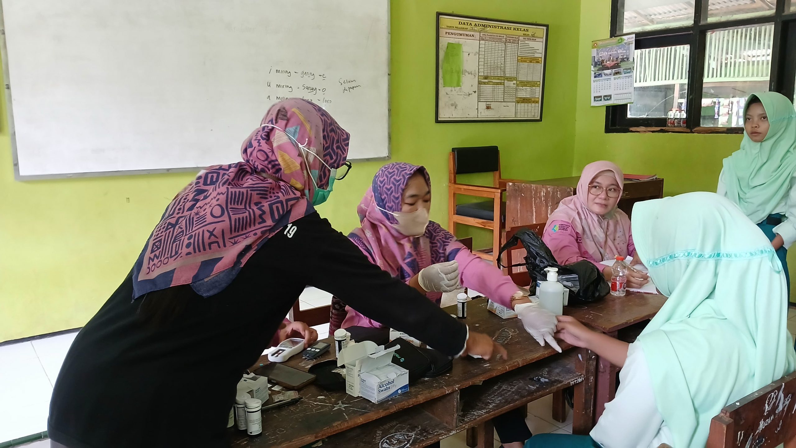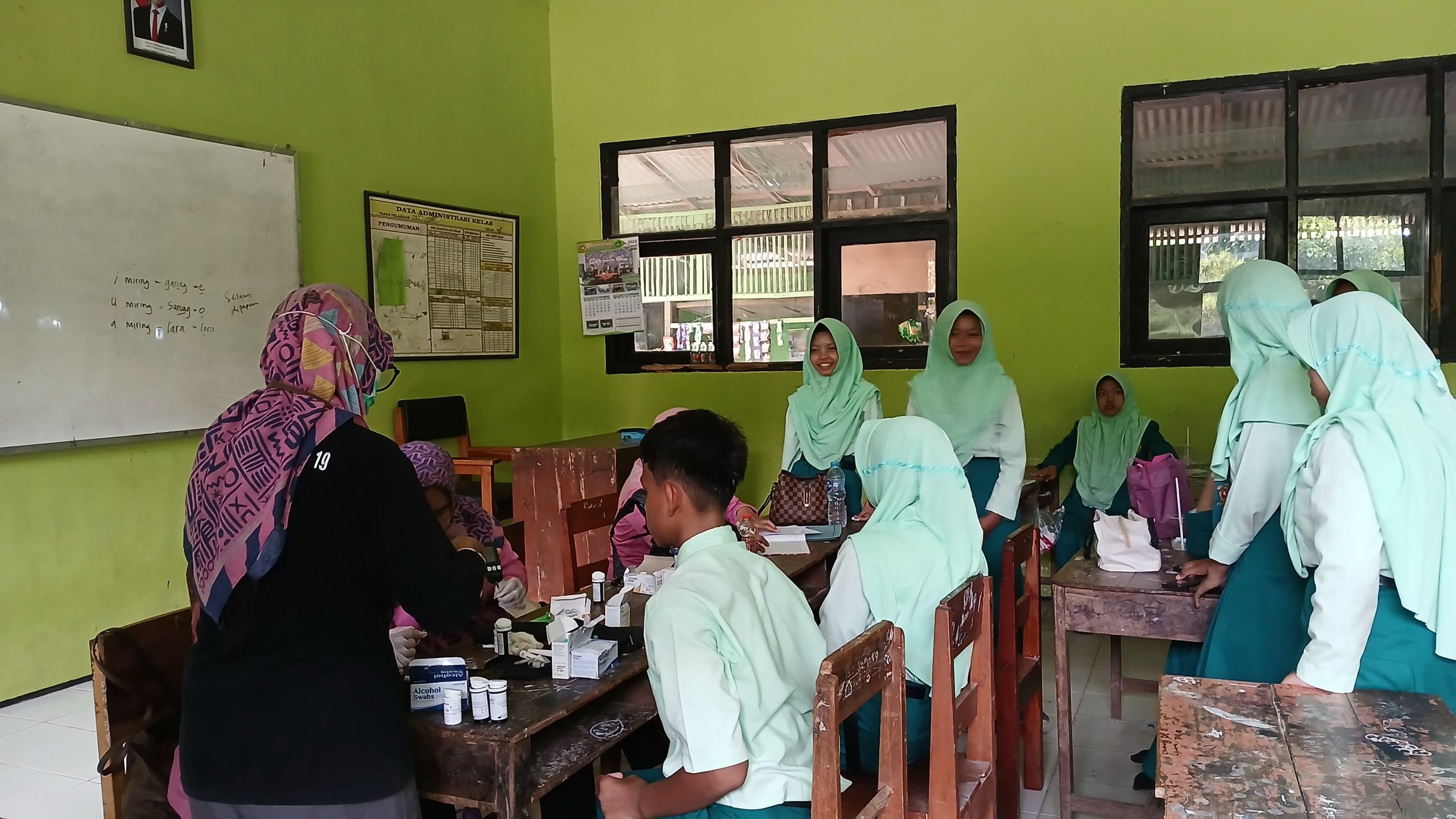 Ratusan siswa MTsN 5 Ponorogo antusias mengikuti rangkaian pemeriksaan yang disediakan oleh tim medis dari Puskesmas Jambon. Pemeriksaan meliputi cek gula darah dan hemoglobin (Hb). Petugas kesehatan juga memberikan edukasi singkat mengenai kebersihan diri dan pentingnya imunisasi.